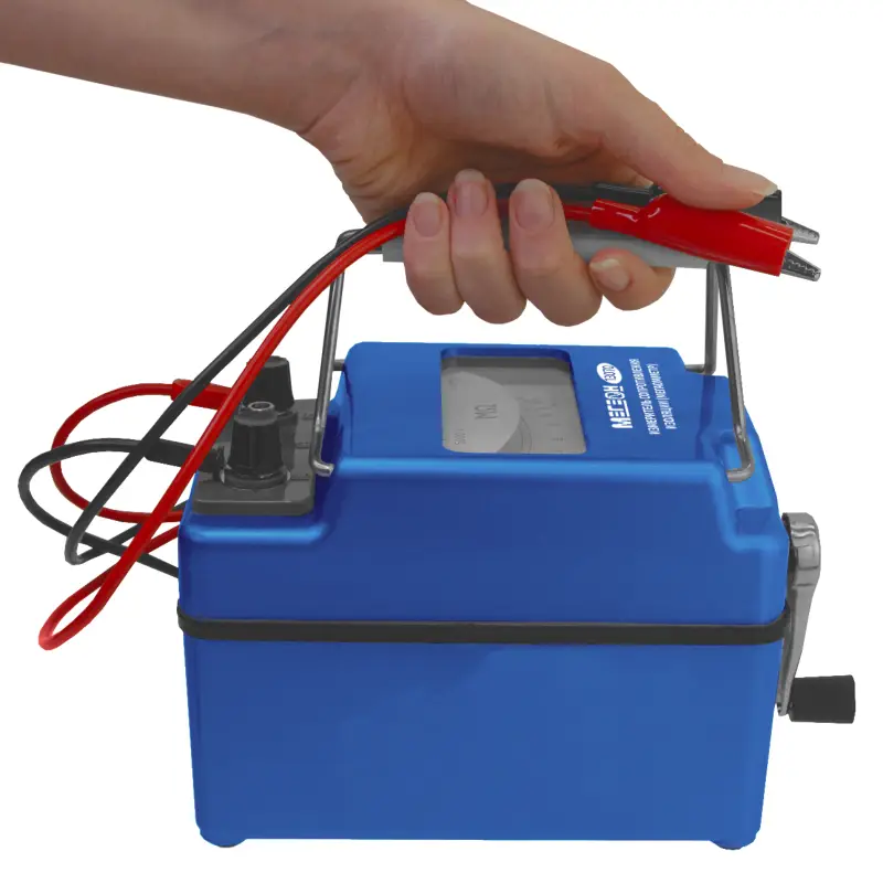 Испытательное напряжение в 500 В обеспечивает надежное выполнение измерений, позволяя точно оценивать состояние изоляции. Погрешности по напряжению и сопротивлению составляют 10%, что гарантирует достаточный уровень точности для большинства практических приложений. Длина дуги шкалы, равная примерно 68 мм, облегчает считывание значений, что особенно важно в условиях, когда время имеет значение.