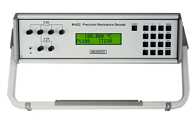 M-622 является прецизионным программируемым магазином сопротивлений с диапазоном от 1 Ом до 1,2 MОм с базовой погрешностью 0,005%. Магазин сопротивления предназначен для испытаний омметров и мультиметров в поверочных лабораториях, а также в промышленности для проверки устройств, обеспечивающих качество. Работа M-622 основана на низкотемпературных реле и на высокоустойчивых фольговых резисторах с низкими температурными коэффициентами, переключаемые с помощью реле.